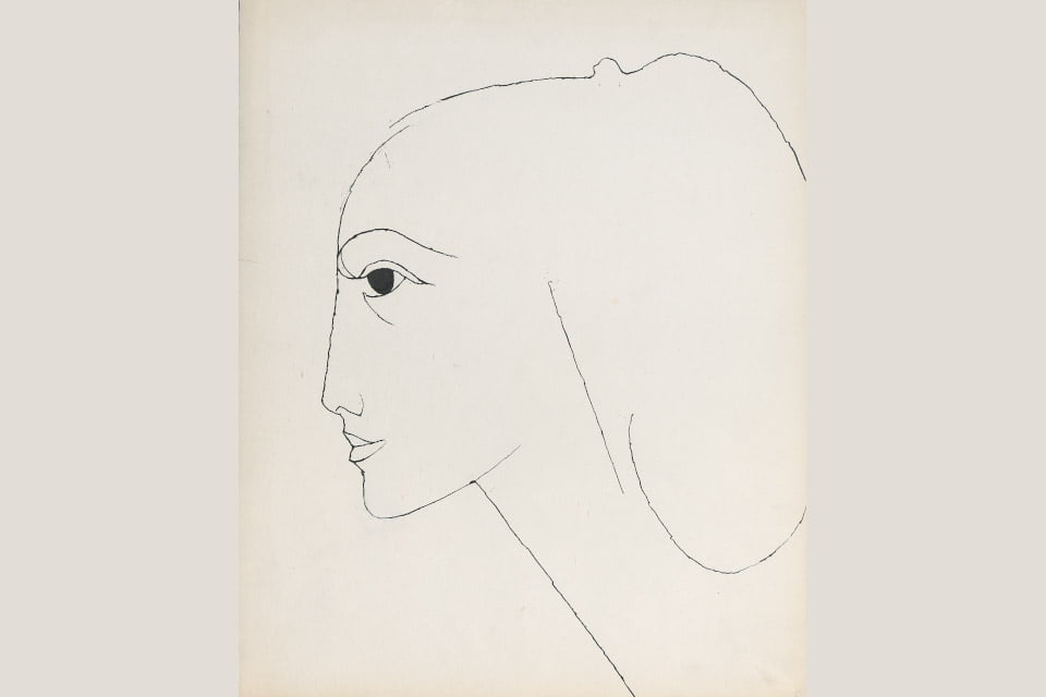 - Tadeusz Kulisiewicz „Głowa kobiety”, 1972, tusz, papier, z kolekcji Muzeum Okręgowego Ziemi Kaliskiej w Kaliszu, MOZK/S/K/850