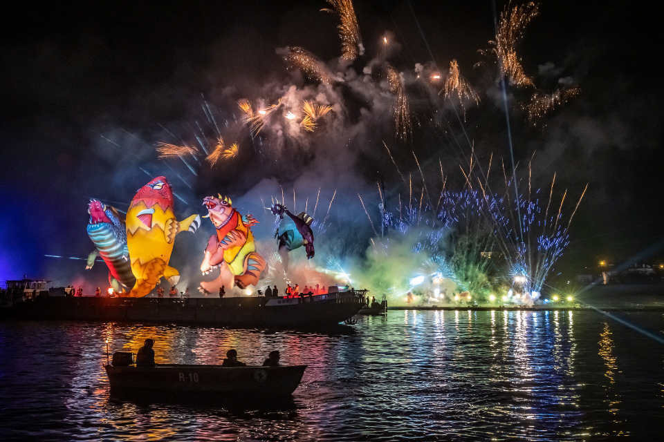 Wielkie Widowisko Plenerowe z wykorzystaniem efektów pirotechnicznych, zaskakującej oprawy świetlnej i laserowej, gigantycznych kurtyn wodnych i pięknej muzyki. Największą atrakcją będą ogromne latające smoki, animowane na barkach i statkach przez aktorów Teatru Groteska. Podobnie jak w poprzednich latach, tegoroczne Widowisko będzie miało proekologiczną formułę.